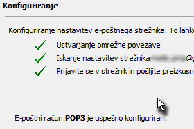 Če smo vpisali prave podatke, bi se moral e-poštni račun konfigurirati.