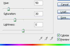 Potem pa Hue določite 50, Saturation 30 in potrdite s tipko OK.