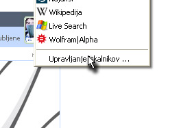 Ko se vam odpre lista brskalnikov kliknite upravljanje iskalnikov.