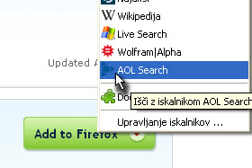 Zaženite Mozillo Firefox in na zgornjem desnem kotu odprite seznam vaših iskalnikov (primeri: najdi.si, google, yahoo ...).