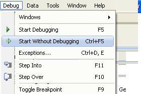 Kliknimo gumb Start without Debugging v orodjarni. |