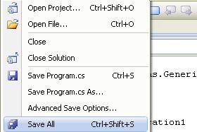 To storimo tako, da pred prvim prevajanjem v meniju File kliknemo na ikono Save All (ali pa kar na ikono Save All v orodjarni). |