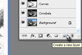 Potem pa novi layer imenujete Crnobela (glej sliko). Kliknite dvakrat na ime layerja, da ga boste lahko imenovali. To vam svetujem, saj bomo v tej lekciji veliko delali z layerji. |