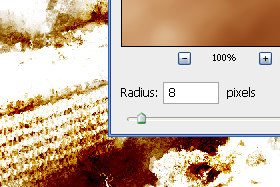 Kliknite zgoraj na Filter, Noise in izberite Median... V novem oknu nastavite Radius na okoli 8 pixels in potrdite z gumbom OK. |