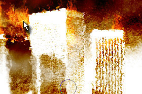 Nato pa z miško klikajte na druge dele fotografije, da ogenj kopirate (glej sliko). Kliknite tukaj, da si ogledate lekcijo, kjer boste spoznali orodje Clone Stamp Tool. |