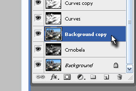 Označite sedaj prvotni layer (Background) in pritisnite tipki CTRL + J, da ga duplicirate.