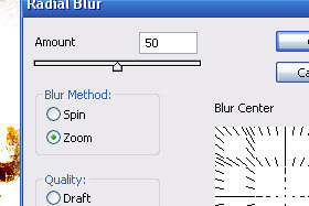 Kliknite zgoraj na Filter, Blur in izberite Radial Blur...