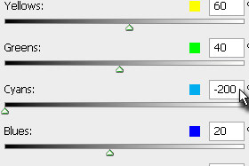 V novem oknu Cyans določite -200 in kliknite na gumb OK. |