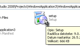 Kliknite nato na datoteko setup.exe, ki se je pri prevodu samostojno ustvarila v mapi (glej sliko)