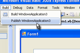 Kliknite Build in nato Publish (zraven je napisano še ime programa, ki ste ga izdelali). |
