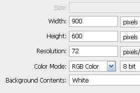 V novem oknu Width nastavite okoli 900 in Height okoli 600 pixels.