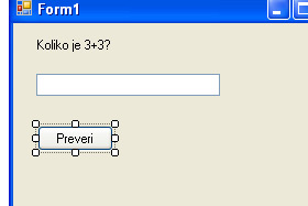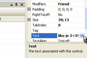 Jaz sem v oknu Properties pod Text vpisal še besedilo, ki se izpiše na gumbu (Preveri). |