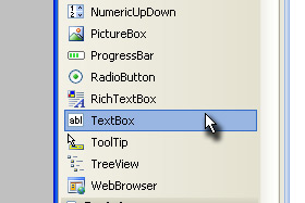 Nato v orodni vrstici izberite orodje TextBox, s katerim bomo na aplikacijo dodali polje za besedilo.