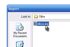 V oknu v Raziskovalcu označite poljubno sliko in potrdite z gumbom Open. |