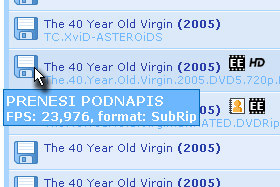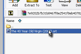 V arhivirani datoteki se nahaja datoteka s podnapisi, ki jo bom z miško prijel ...