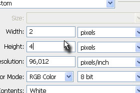 Ustvarimo nov dokument, ki naj bo velik 2x4 piksla.