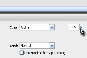 Sedaj pa v oknu Properties Color nastavite Alpha in jakost 70% (glej sliko).