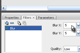 Kliknite nato na zavihek Filters, ikono za dodajanje (znak plus) in izberite Blur.