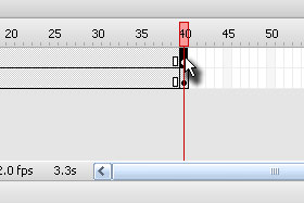 Sedaj pa na obeh layerjih označite Frame 40 in pritisnite tipko F6 (glej sliko).