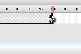 Sedaj pa na obeh layerjih označite Frame 100 in pritisnite tipko F6 (glej sliko).