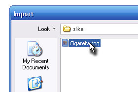 V oknu z raziskovalcem označite slikovno datoteko, kjer boste dodali dim in potrdite s klikom na gumb Import. |