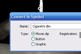 Z orodjem Selection Tool (bližnjica je tipka V) označite črte. V novem oknu Type določite Movie clip in potrdite s klikom na gumb OK. |