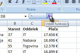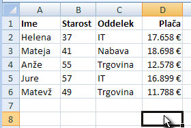 Excel bo tokrat seštel plače zaposlenih, ki so starejši od 50 let.