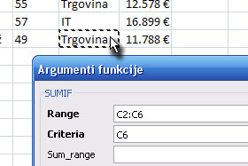 Označite polje Criteria in označite celico, kjer piše Trgovina (glej sliko).