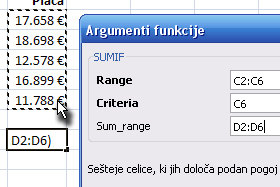 Sedaj označite polje Sum_range in označite vse celice, kjer je vpisana plača.