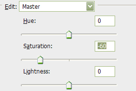 Podvojite layer(Ctrl+J) in na tipkovnici pritisnite tipki Ctrl+U, da se vam odpre na sliki prikazano okno. Saturation nastavite na -60. Kliknite OK.