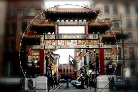 Vzemite velik čopič črne barve in nekajkrat kliknite na fotografijo, da zamegljenost na sredini izgine.