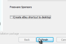 Izberemo možnost, da ne želimo podpirati sponzorjev in kliknemo gumb Finish.