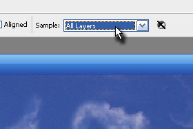 Zgoraj v orodni vrstici preko izbirnika Sample določite All Layers (glej korak 15). |
