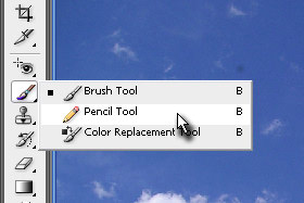 Držite z miško na orodju Brush Tool (bližnjica je tipka B) toliko časa, dokler se ne prikažejo ostala orodja. |