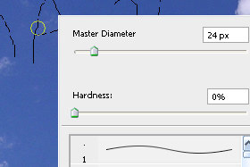 Kliknite na dokument z desnim miškinim gumbom in izberite Hardness 0% in Master Diameter okoli 25 px (glej sliko).