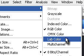 Kliknite zgoraj na Image, Mode in izberite Lab Color.