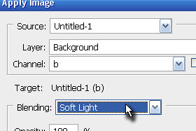 V novem oknu Blending preko izbirnika določite Soft Light in potrdite s klikom na gumb OK. |
