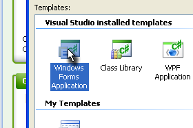 V oknu, ki prikaže možnosti o vrsti projekta, kliknite Windows Forms Application.