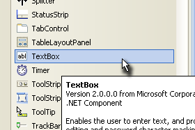 V seznamu orodij, ki je po navadi kar na levi strani, izberite komponento TextBox.