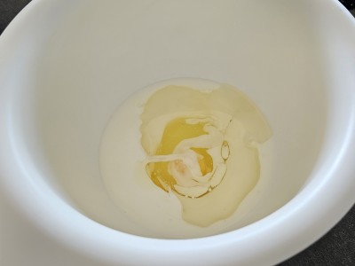 Pripravili bomo biskvit. V eno posodo dodajte eno jajce, 60 ml olja in 1,5 dl jogurta. Premešajte vse skupaj. |