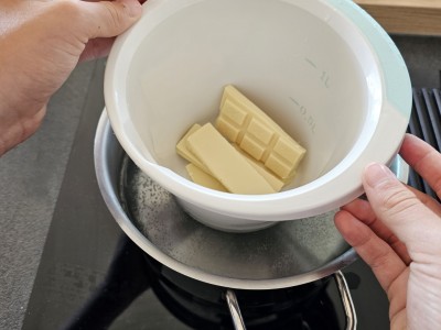 V vodni kopeli stopite 100 gramov bele čoklade. |