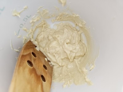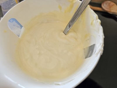 Stepeno smetano dodajte v lonec z jugurtovo kremo in spet dobro premešajte. Veliko mešanja, se nam bo že zmešalo :) |