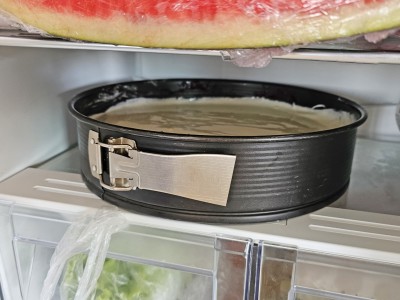 Postavite pripravljen kolač v hladilnik za eno uro ali več. |