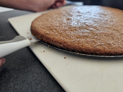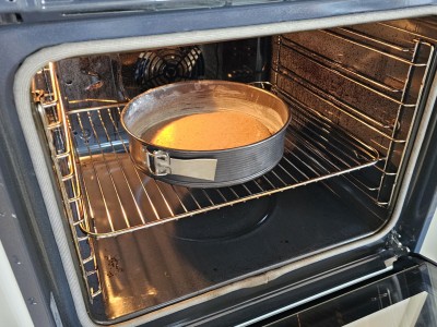 Ko bo testo pečeno, preverite, če se da lepo odlepi od pekača. Prede tem pa lahko v pecivo z nožem preverite, če je dovolj pečeno. Na nožu ne bi smelo biti mase, ko ga izruvate ven iz peciva. |