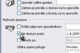 V novem oknu označite Ne dostavi pred: (glej sliko).