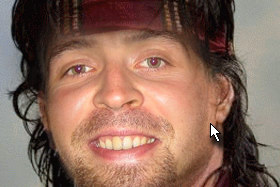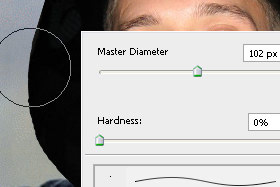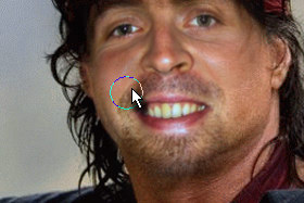 ![]() Pritisnite tipko E, da izberete orodje Eraser Tool in še malenkostno in zelo počasi odstranjujte dele obraza, ki ga dodajate. |