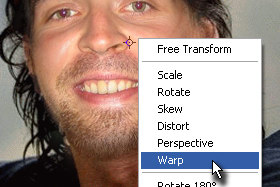 ![]() Pritisnite tipki CTRL + T, nato v selekciji kliknite z desnim miškinim gumbom in izberite Warp. |