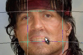 ![]() Potem pa z miško počasi popravljajte oziroma premikajte dele obraza, da se bodo za približno poravnali z ozadnjim. |