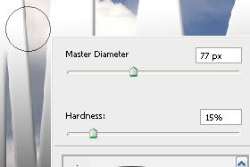 ![]() Kliknite z desnim miškinim gumbom na dokument in nastavite Hardness na okoli 15% in Master Diameter (velikost čopiča) poljubne vrednosti. |