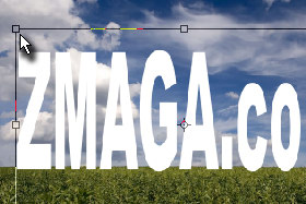 ![]() Sedaj pa pritisnite tipki CTRL + T in ustvarjen napis raztegnite skoraj čez celoten dokument in ga nato premaknite še na pravo mesto (glej sliko). |